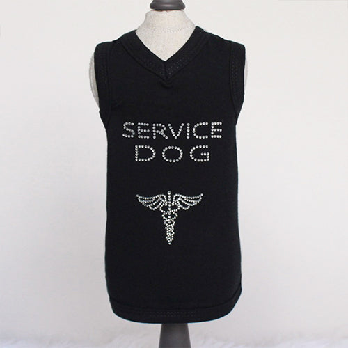 Service Dog V-Neck Tank offers irresistibly cozy. Service dogs deserve to express their style too Let everyone know that your dog is a service dog with a trendy Service Dog Tank by Hello Doggie, featuring a dazzling crystal rhinestones "Service Dog" applique.