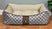 The generous sleep surface, stylish signature print, and subtle pinched-edge trim bring a designer look to any room, seamlessly blending with your home décor. A scooped front makes entry easy for pets of all ages, especially those needing extra support.