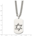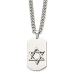 Impeccable in both style and design, this polished 316l stainless steel necklace features a classic dog tag with an embossed six-pointed star and a 24 inch, 5mm curb chain finished with a fancy lobster clasp....