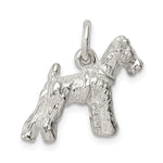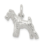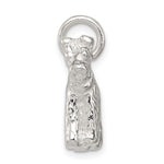 Schnauzers are robust, fun-loving companions in part due to their inquisitive, spunky nature. This beautiful little pooch captured in sterling silver features a three-dimensional, solid design with a textured and polished finish. It measures approximately 18mm (11/16 inch) in width by 16mm (5/8 Inch) in length, which includes the jump ring. Made in the U.S.A. Chain not included.