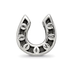 Unleash your creative imagination to customize a one-of-a-kind jewelry design. This horseshoe charm fashioned from polished and antiqued sterling silver will add a pinch of luck and western style to your collection. It is approximately 9mm in width by 9mm in length and has a 4mm core that is interchangeable as well as compatible with Reflections and other popular 3mm width bead style bracelets and necklaces.