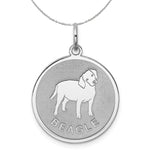 Sterling Silver Laser Etched Beagle Dog 19mm Necklace
