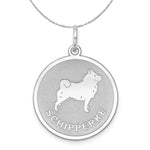 Sterling Silver Laser Etched Schipperke Dog 19mm Necklace
