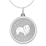 Sterling Silver Laser Etched Shetland Sheepdog Dog 19mm Necklace