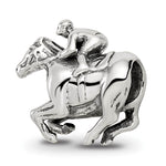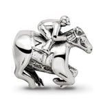 Whether you are an avid athlete or a recreational fan this miniature jockey and race horse is perfect for those who love the competition. Cast in sterling silver with an antique finish it measures approximately 10mm with a 4mm center. All of our charms are interchangeable as well as compatible with Reflections and other popular 3mm width bead style bracelets and necklaces.