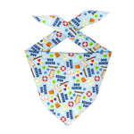 SEE MORE NAUTICAL Paisley Paw Designs Dog Bandanas are handmade in the USA with attention to every detail. Lightweight - just tie around your dogs neck, dogs don't even notice they're wearing it. This bandana is already cut into triangle a shape. Our Bandanas are made with quality fabrics using designer prints and sewn for durability. Each Bandana has a rolled hem (edge) on all 3 sides for a finished look! Our Bandanas are “one of a kind” as pattern placement varies. How to Use: For large dogs just tie around neck, smaller dogs roll down the top edge to make smaller and tie around neck, leaving a few inches for comfort. Wear bandana in front of chest or to the side or laying on dogs back – you choose the look! Care: Machine wash cool water, lay flat to air dry Fabric: 100% Cotton Sizes: are approximate and may vary slightly X-Small - 13" x 13" with 18" diagonal (fits dogs 4-9 lbs) Small - 15" x 15" with 21" diagonal Medium - 18" x 18" with 25" diagonal Large - 21" x 21" with 29" diagonal X-Large - 24" x 24" with 33" diagonal NOTE: Always give yourself a little wiggle room in your measurements + a few inches on each end for the knot!