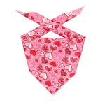 VALENTINES DAY DOG BANDANAS Our Bandanas are made with quality fabrics using designer prints and sewn for durability. Each Bandana has a rolled hem (edge) on all 3 sides for a finished look! Our Bandanas are “one of a kind” as pattern placement varies. How to Use: For large dogs just tie around neck, smaller dogs roll down the top edge to make smaller and tie around neck, leaving a few inches for comfort. Wear bandana in front of chest or to the side or laying on dogs back – you choose the look! Care: Machine wash cool water, lay flat to air dry Fabric: 100% Cotton Sizes: are approximate and may vary slightly X-Small - 13" x 13" with 18" diagonal (fits dogs 3-9 lbs) Small - 15" x 15" with 21" diagonal (fits dogs 8-15 lbs) Medium - 18" x 18" with 25" diagonal (fits dogs 15-35 lbs) Large - 21" x 21" with 29" diagonal (fits dogs 35-60 lbs) X-Large - 24" x 24" with 33" diagonal (fits dogs over 60 lbs) NOTE: Always give yourself a little wiggle room in your measurements + a few inches on each end for the knot!
