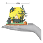 Light the Witches Convention at your own risk! With a small hole on its underside designed to borrow a standard bulb from your Christmas tree your cottage will light up. Upon lighting your cottage, you will immediately discover the first of many secrets, the spook-tacularly crafted scene inside. Looks like the witches brought a long a friend or two; can you find the ghost and two cats? How many witches can you find in attendance at this convention?
