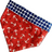 Handmade in the USA by Chloe & Max, this Cow Print Rodeo Bandana Dog Collar features black and white patches, with red rodeo trim and backing. These sporty buckle bandana collars come in 5 sizes XS-XL and snap on easily.