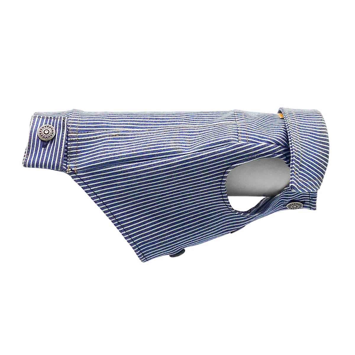 This dog coat is made to measure in sporty indigo blue and white striped denim. You can personalize your dog coat with your dog's name (up to 8 characters) embroidered on the back for no additional charge. Machine washable. Made in Italy. Made To Measure: Exclusive handmade clothing item expressly tailored to order. Please enter all measurements. Length : Distance between the base of the neck and the base of the tail. Neck : Neck circumference. Chest : Chest circumference at its widest point. Buttonhole : In case your dog doesn't wear a conventional collar but prefers a harness, please tell us the exact distance between the base of the neck and the center of the harness's dorsal ring, as well as its diameter. We also need to know if the harness's ring is parallel or perpendicular to the backbone for perfect execution. Please allow 3-4 weeks for delivery as this item ships directly from the designer in Italy. This item is made to measure, therefore, is not eligible for return/exchange.