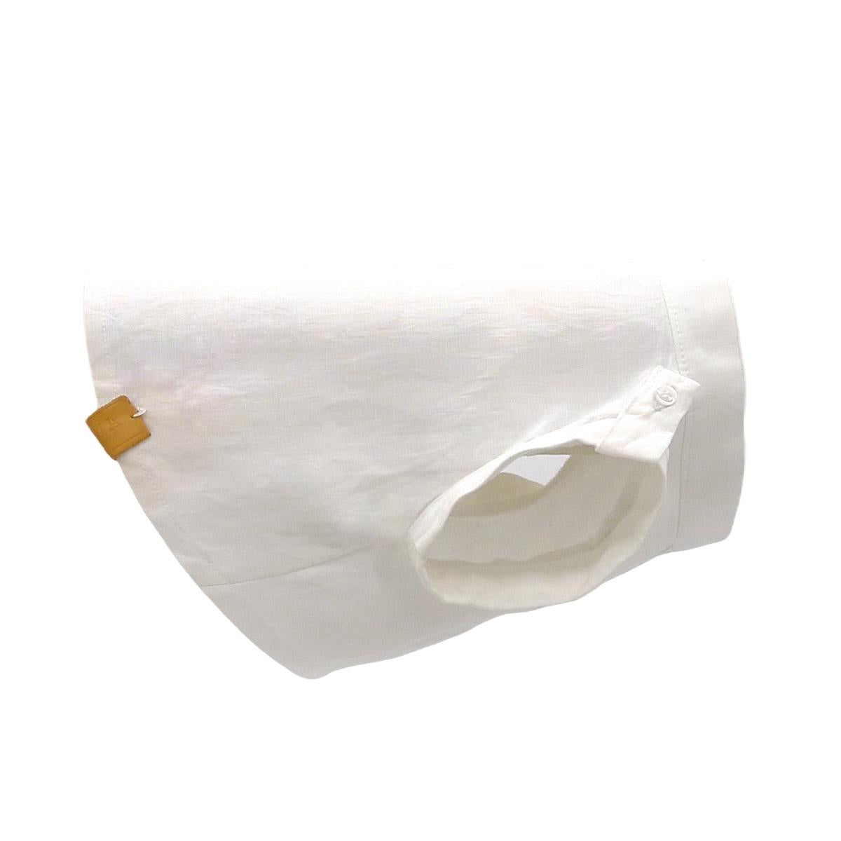 This dog shirt is a classic with all the details of tailoring. This dog shirt is made in pure Italian white linen with a mandarin collar and sleeves that are gathered with a button. We can personalize your dog shirt at no extra cost with your dog's name (up to 8 characters) embroidered on the collar in a contrasting color. Machine washable. Sizes: S-XL Each product has its own unique size chart. Make sure to measure your pet based on the size chart available for each product. Referring to the size chart shown will help ensure the perfect fit. Please allow 2-3 weeks for delivery as this item ships directly from the designer in Italy. This item is made to order therefore it is not eligible for return/exchange.