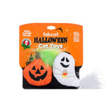 Add some festive fun to your cat's playtime with this cat toy duo featuring a plush pumpkin and a ghost companion, both stuffed with premium North American grown catnip! These gourd-geously adorable toys are sure to cast a spell of excitement over your furry friend.