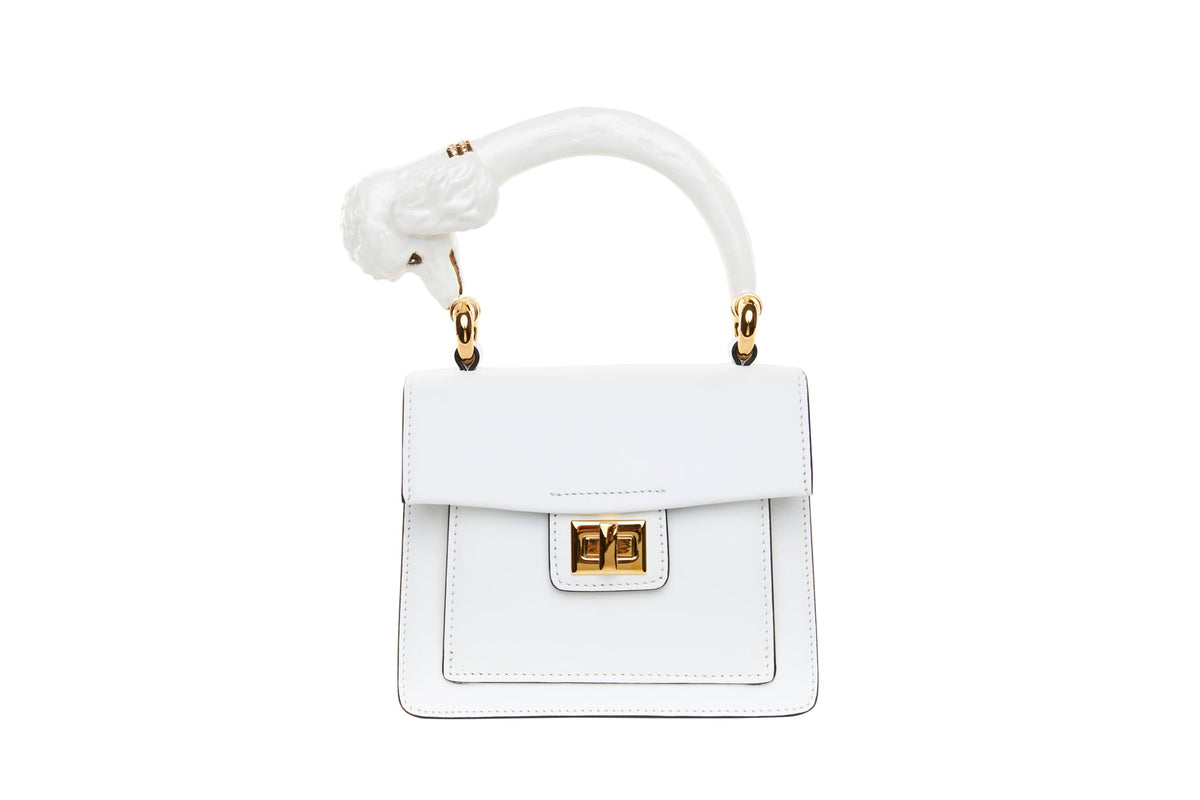 This Pearl White Italian Leather Handbag with a Pearl White Handcrafted Pearl White/Swarovski Crystal Handle is named The Sebastian Bag. After the Designers love of her Standard Poodle, Sebastian and the inspiration behind the entire exclusive Poodle Handle Collection! Elegant, unique, conversation piece.