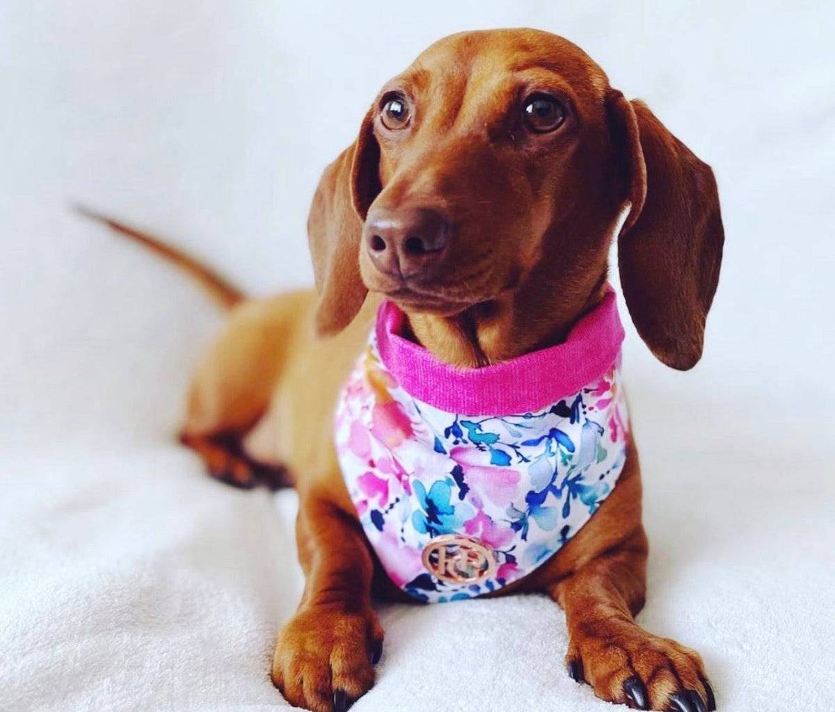 Our scarf fabrics are unique prints that are sourced in exclusive fabric houses and are of the highest quality. Our scarves are hand made here in Australia. HGP' Collection of Scarves are made from 100% cotton and 100% linen/linen blends. Our fabrics are durable, comfortable and stylish suitable for any fashion conscious pup. Each scarf comes with a press stud to match the colour of the scarf along with a stylish HGP emblem made from zinc alloy hardware.