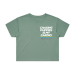 Chasing Puppies is my Cardio - Now Available on our Women's Crop Tee