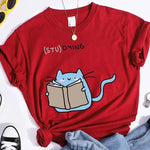 Get ready to rock your study sessions with this "(STU)DYING" Cat Graphic T-Shirt! Featuring a kawaii cat reading, this shirt is both cute and practical (unlike your procrastination habits). Stay stylish and motivated while hitting the books. Available now!