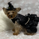 A real stunner, this Bling Black Dog Party Dress is bound to make your pup the star of the show. Exquisitely crafted with lace, tulle, faux pearls and bling beading, this elegant dog dress is designed for small breeds. Perfect for parties, weddings, anniversaries and other special occasions.