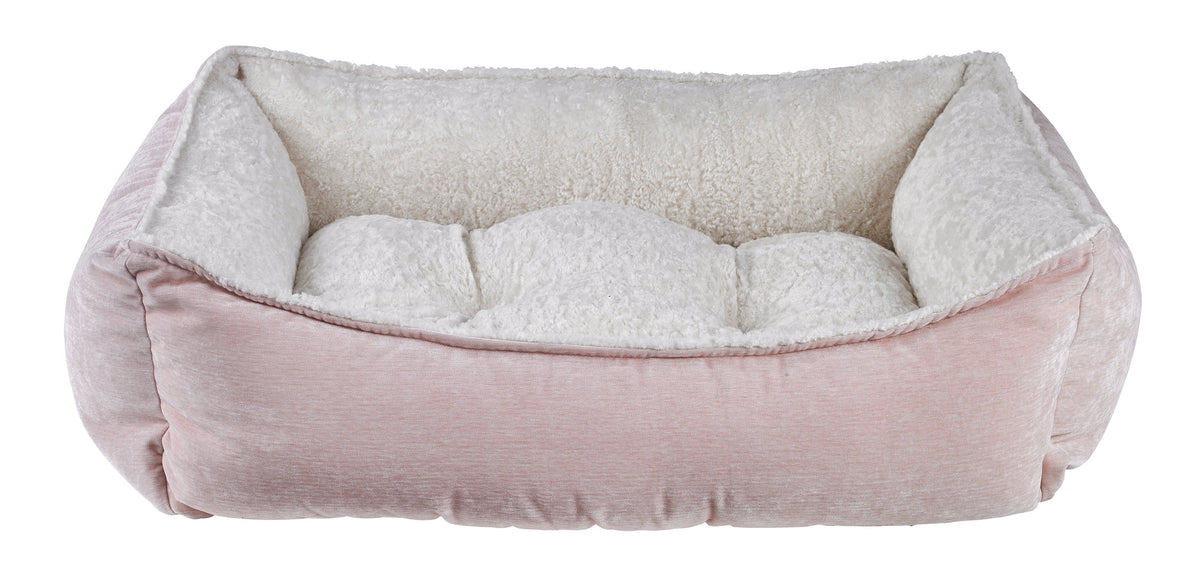 Easy Entry, Scooped Design! Stylish two-tone fabric combination and European style "pinched edge" trim detail. Removable tufted center cushion. Generous sizing maximizes sleeping area. Great design for older or arthritic dogs.