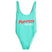 Featuring our bold red "PUPPIES" graphic inspired by a classic anti-drug message, this suit helps spread joy and raise eyebrows in all the right ways. Available in classic black and fresh mint teal, it’s soft, stretchy, and made to flatter.