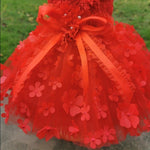 Designed for Posh Dog Life, our handmade Scarlett floral lace embroidered dog party dress is exquisitely crafted with the finest details, including 3-D flowers, beading and a tulle skirt. Suitable for any season and available in 5 sizes, this luxurious red dog dress is perfect for weddings, anniversaries, photoshoots and special occasions.