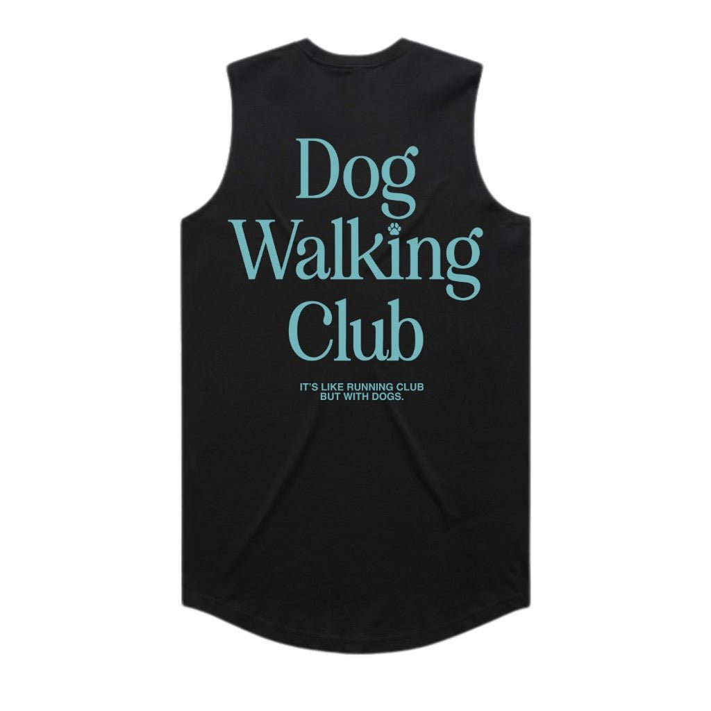 Dog Walking Club on our Women's Sleeveless Printed small on the front chest, and big on the back! One of the first women's sleeveless we have made with the graphic on the back! Its Like...