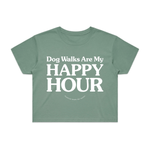 Dg Walks Are My Happy Hour! This Crop Tee is perfect for walking your pup! Our New Crop Tee is - Relaxed fit- Crew neck- Mid weight, 5.3 oz, 28-singles- 100% combed soft cotton -...
