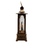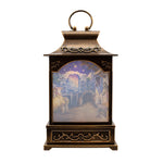 This 11-Inch Battery Operated Warm White LED Nativity Lantern is a beautiful addition to any home's holiday decor. This lantern features a black, rustic base with a nativity scene and a snowy background. When switched on, a spotlight falls on the nativity and glitter twirls around for a snowy scene. Powered by 3 AA batteries (not included).
