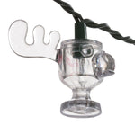 Relax on your "Christmas Vacation" with this National Lampoon Christmas Vacation Wally World moose mug lights by Kurt Adler! Each of the 10 lights in this set is designed after Clark Griswold's clear Wally World moose eggnog mug. Each of these fun light sets has a 30" green lead wire, 12" light spacing, 12V 0.08A clear incandescent bulbs, 4 spare bulbs, and 1 fuse.