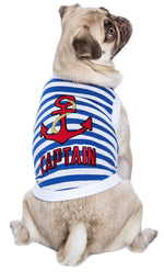 Parisian Pet 'Captain' Fun Sailor Dog Outfit – Soft and Breathable Nautical Pet Wear for Small Dogs & Cats, Blue & White Stripes