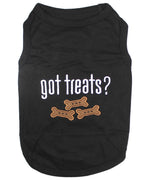 Part of Parisian Pet novelty dog apparel, this embroidered pet t-shirt is designed to last, offering both comfort and a stylish fit. Get your furry friend ready to make a statement with the Parisian Pet 'Got Treats?' Dog Shirt, available in black for a sleek, playful, and trendy look!