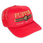 Metallic Gold 3D Puff Embroidery Designer Puppies Trucker Hats