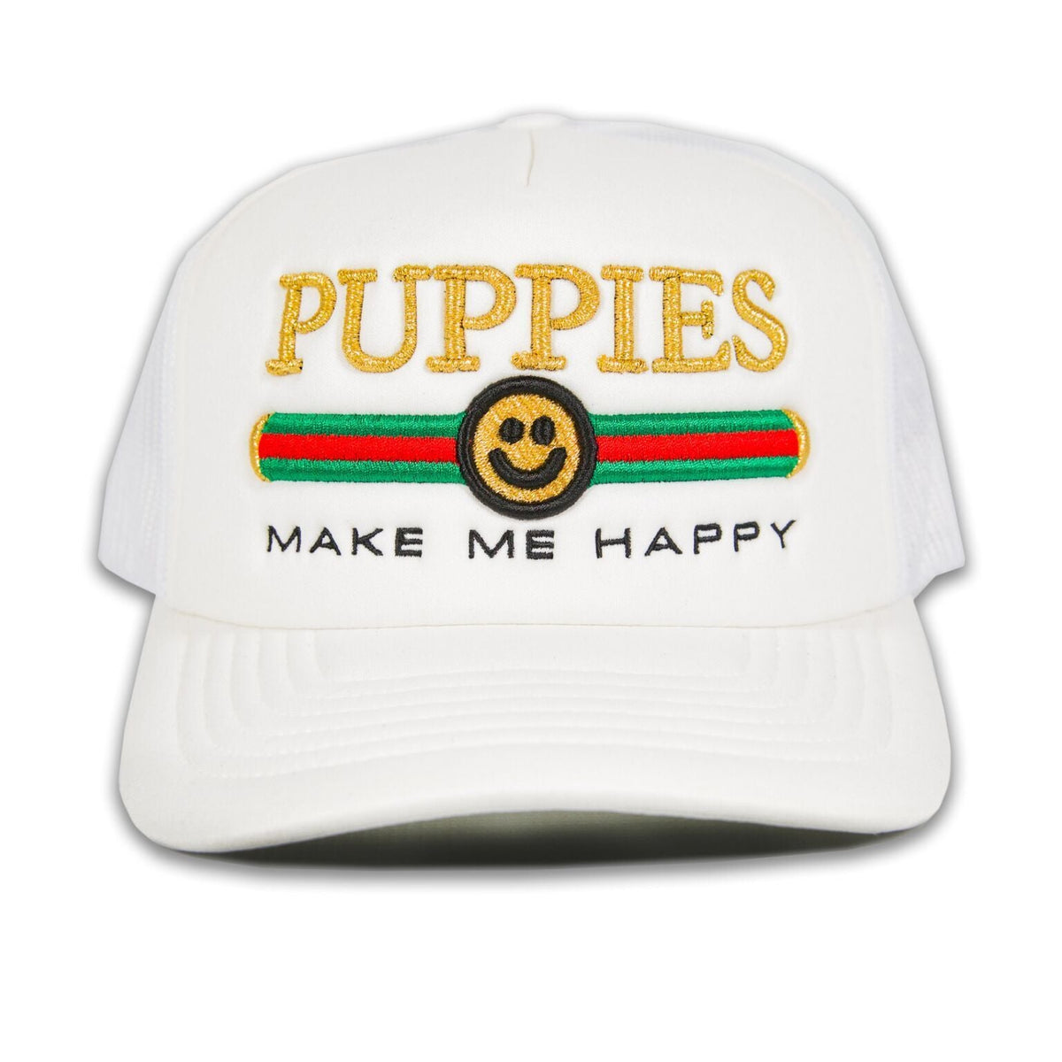 Metallic Gold 3D Puff Embroidery Designer Puppies Trucker Hats Now Available in Multiple Colors and Sizes. OS = One Size Fits Most S/M = For Smaller heads, its a Medium Crown for Shallower Heads M/L...