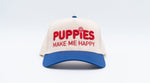 Puppies Make Me Happy 3D Puff Embroidered Hat - Now Available in Red, White & Blue for the 4th of July