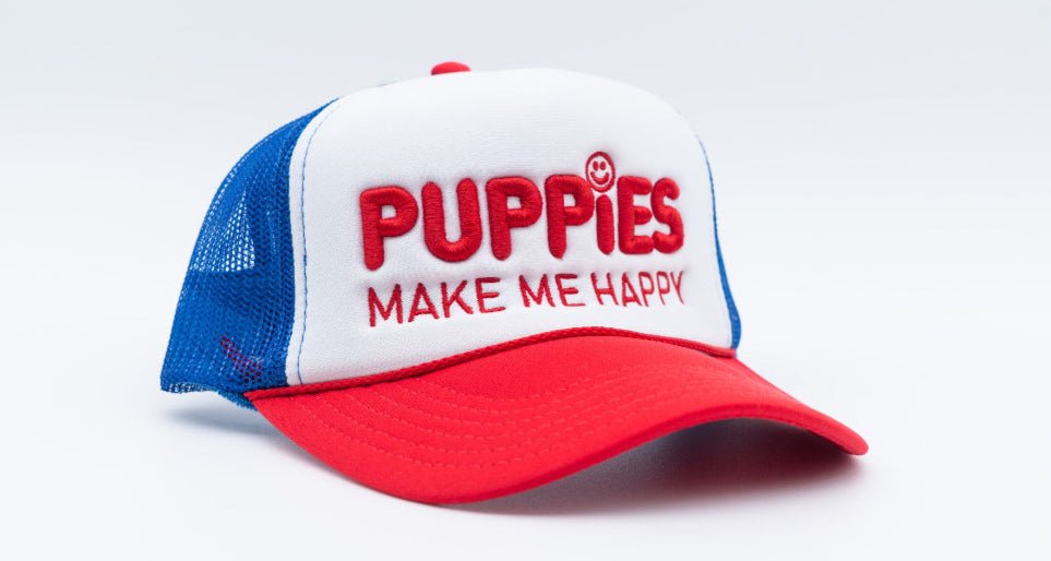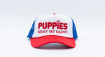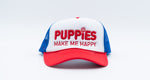 PUPPIES MAKE ME HAPPY Red, White & Blue Trucker Hat