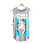 PUPPIES & SAVASANA - Part of Our Puppies and Fitness Line. Printed on a custom cut-and-sew sleeveless shirt with the world's softest material ever made, Our Puppies Soft Fabric. So Soft, You will want to...