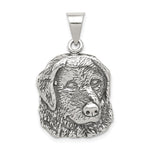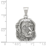 Endearing and swanky with plenty of canine personality captured in antiqued sterling silver featuring a detailed, textured design. This two-dimensional pendant is approximately 18mm (11/16 inch) wide by 20mm (3/4 Inch) long; with the tapered...