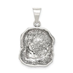 Solid sterling silver open back design Antiqued textured finish Approximate size is 18 x 25mm with the bail Average weight is 3.33 grams