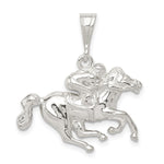 Start conversations wherever you go with a unique charm created to spark interest and reveal your passion for horse racing. This polished sterling silver pendant features a two-dimensional open back design that is approximately 27mm...