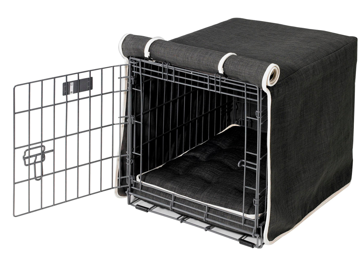 Dress up Your Wire Crate in Style! This Luxury Cover not only gives your dog privacy and security, but adds a touch of class to ordinary looking wire crates. The finishing touch to our overwhelmingly popular Luxury Crate Mattress. The most practical and stylish crate set on the market. Roll up front panel. Machine washable and dryable. Please note: Luxury Crate Mattress sold separately.