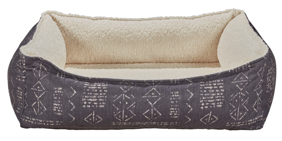 Easy entry scooped front design combined with cool gel memory foam support. The memory foam cushion insert is infused with Cool Gel Micro Beads which helps regulate body temperature. Elegant two-tone fabric combination and European style "pinched edge” trim. Generous sizing maximizes sleeping area.