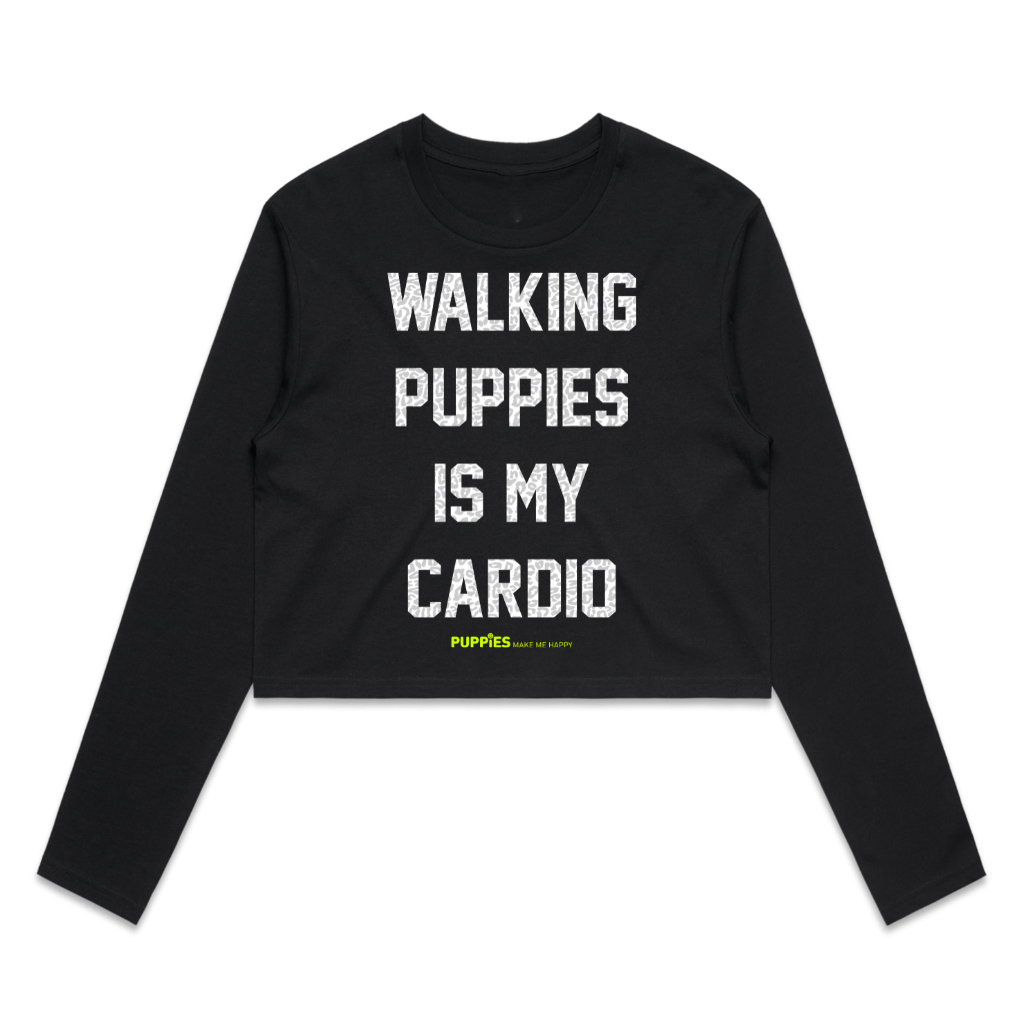 Walking Puppies is My Cardio Leopard Print | Long Sleeve Crop Tee