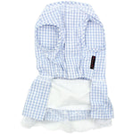 Give your pet a timeless and elegant look with the Parisian Pet 'Gingham Countryside Lace Dress' Dog & Cat Shirt. This gingham dog dress is the perfect combination of charm and comfort, featuring a classic blue plaid pattern complemented by delicate lace details. Designed for both dogs and cats, this blue pet dress is ideal for summer outings, countryside strolls, or special occasions.