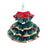 Perfect for holiday parties, this elegant green Green Christmas Tree Dog Dress is layered in ruffles with gold ribbon and red and white pom pom ornaments. Designer handmade for small and medium dogs.