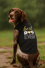 The Parisian Pet 'Best Dog Ever' Cute Slogan Dog T-Shirt is the perfect way to celebrate your furry companion. Made from premium embroidered dog clothing, this comfortable dog shirt for pets is soft, breathable, and designed for all-day wear. The durable embroidery ensures a stylish and lasting look, making it a must-have in high-quality pet apparel collections.