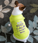 As part of the Parisian Pet casual dog apparel collection, this shirt offers both quality and style. It's a great addition to any pet's wardrobe, blending fashion with comfort. The cute slogan dog shirt is available in light green, a versatile color that works for all occasions. Make your pet's day with the Parisian Pet 'Keep Calm' Playful Dog Shirt!