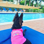 Parisian Pet 'Miami Poochie' Dog & Cat Shirt – Trendy Embroidered Vacation Dog T-Shirt, Comfortable & Machine Washable – Pink