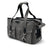 Modern soft canvas collapsible tote with dual strap design, functional pockets outside with clasp metal hardware, inner compartmental pockets, zipper mesh window with cover over top, rolled up cover on the side, and an inner ...