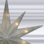 This radiant Silver Glitter Star Tree Topper illuminates with soft white lights, adding a warm glow to your Christmas tree. Its sleek design and shimmering glitter finish evoke timeless holiday tradition while blending modern sophistication, making it a stunning centerpiece for your festive dècor.