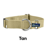 The solid color premium nylon collar is available in either a 5/8″ or 1″ width. The stainless steel hardware will never rust or corrode and the webbing can literally be used to tow cars. It will not break or fray, no matter how hard your dog pulls.