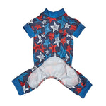 Available in red or blue, these Americana Stars & Stripes Dog PJs feature the softest textures for lounging. These dog pajamas are perfect for small and medium-breed dogs such as Chihuahua, Yorkie, Pug, Poodle.